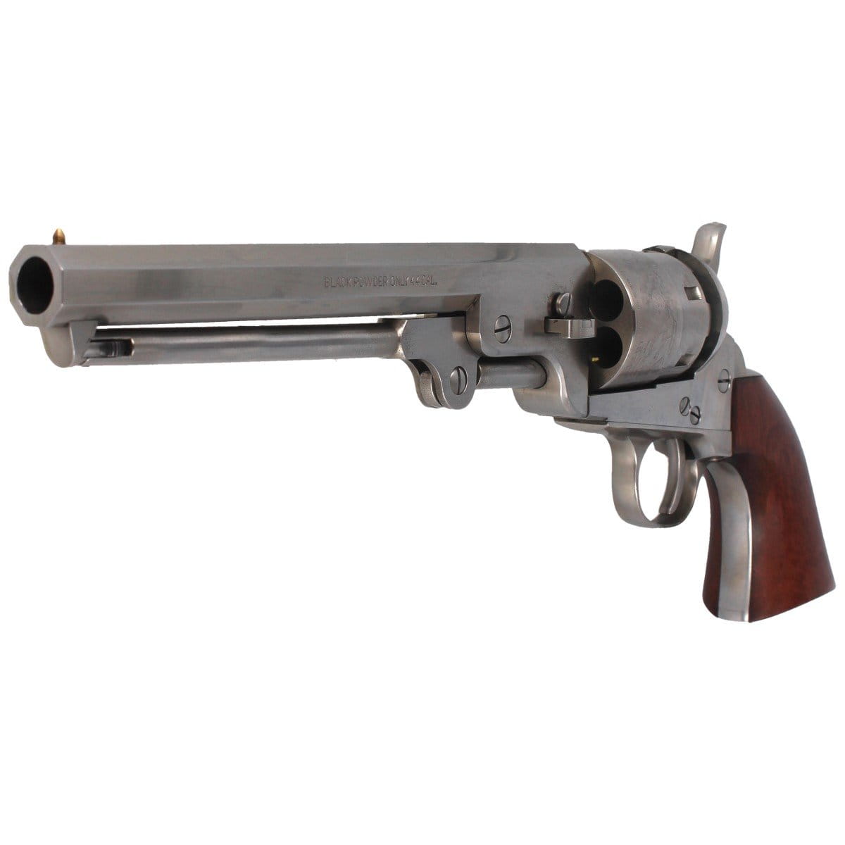 1851 Colt Navy Yank Old Silver .44. Firmie Pietta udało się perfekcyjnie odtworzyć ten przepiękny rewolwer czarnoprochowy Samuela Colta w wykończeniu Old Silver Steel. Ta wyjątkowa broń, symbol Dzikiego Zachodu oferowana jest z grawerowaną na cylindrze bębna sceną zwycięstwa II Texas Navy w bitwie morskiej pod Campeche w roku 1843.